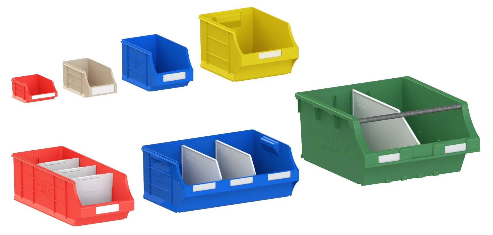 Our Maxi Bins come in seven sizes and five different colours to allow for different combinations and suit various operational requirements.