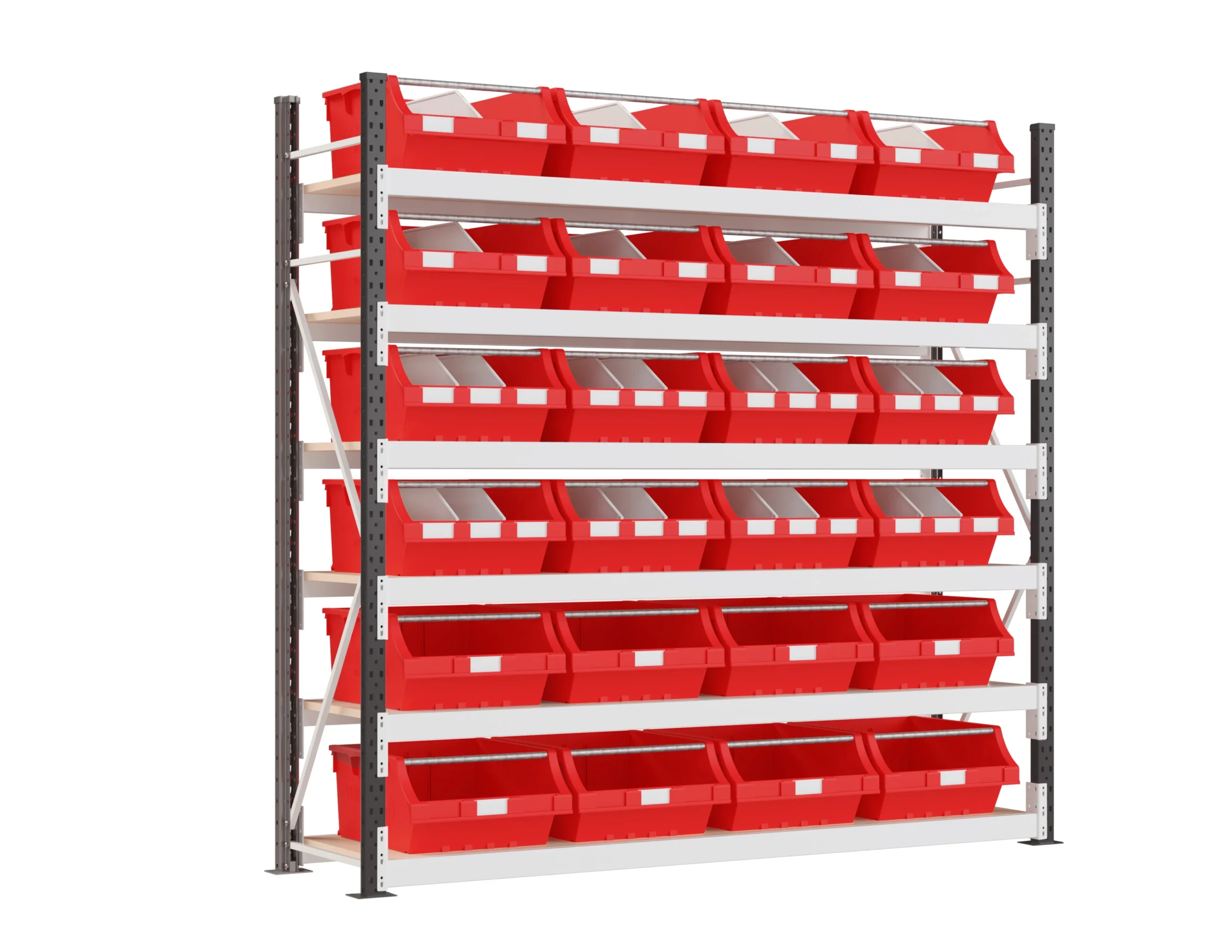 Dexion’s range of bins can be placed on shelves, hung on panels or stacked. Bins can be labelled, grouped by product type, size or order frequency and placed in accessible areas to optimise picking routes.